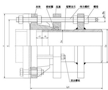 2.該產品采用金屬鑄造或焊接組成,松套部位選用梯形橡膠密封圈,在壓蓋和螺栓的作用下。